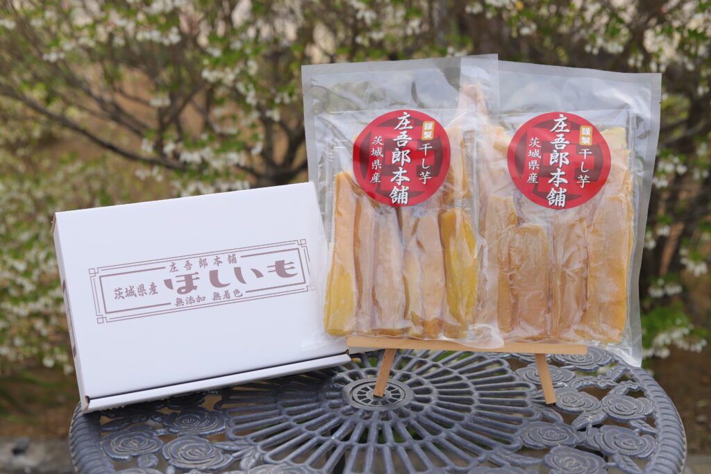 庄吾郎本舗の干し芋は食べやすいスタンダードな平干しタイプと、地域でもめずらしい食べごたえたっぷりな丸干しタイプの2種類がございます。さらに、それぞれお試しいただきやすい150g、倍のサイズとなる300g、たくさん食べられる大容量の1kgと3種類のサイズにて販売中! いつも頑張るあなたへのご褒美に、大切な人やご家族へのプレゼントに、ぜひお買い求めください。